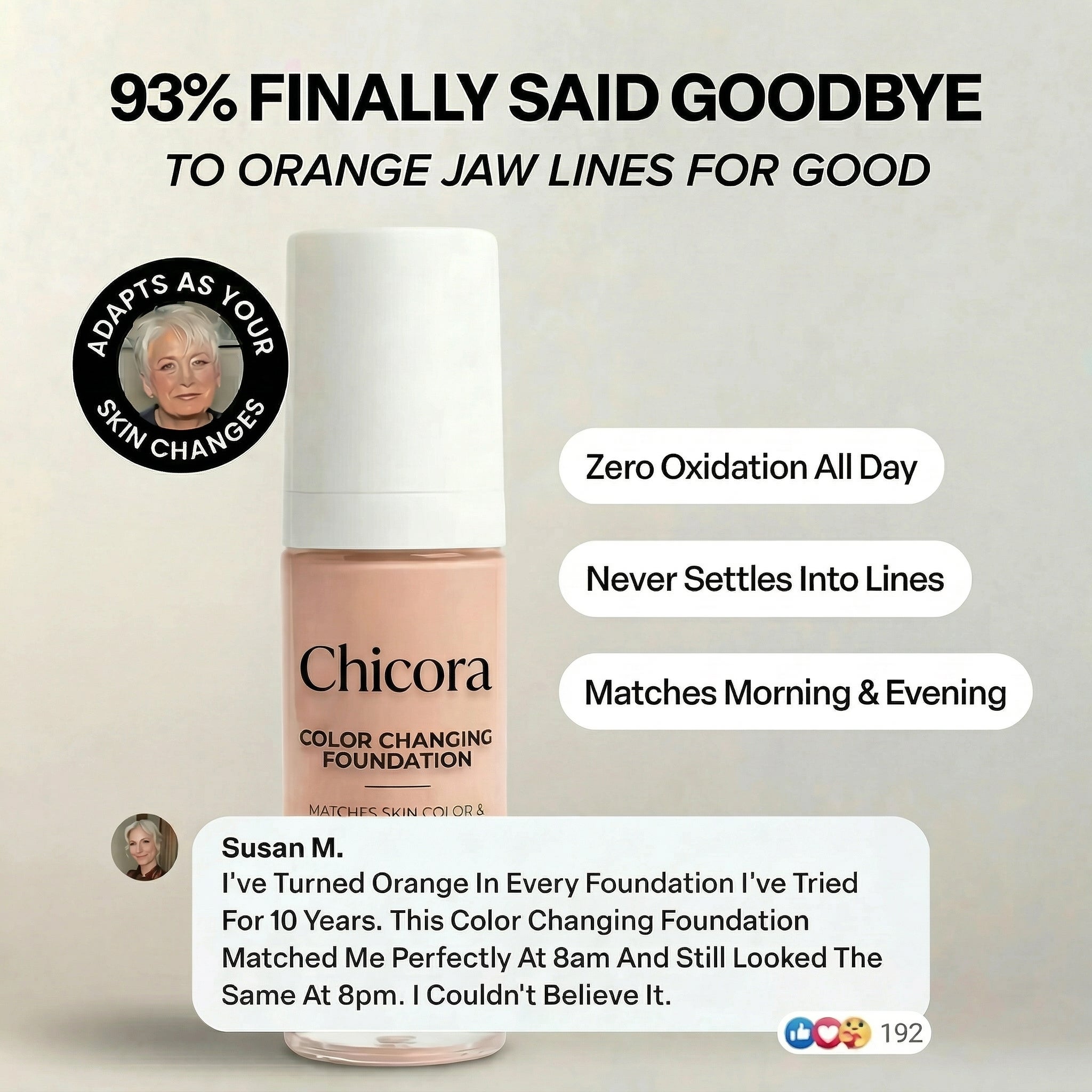 Chicora color changing foundation blends seamlessly with my skin tone and gives a flawless, natural finish. I feel confident all day!